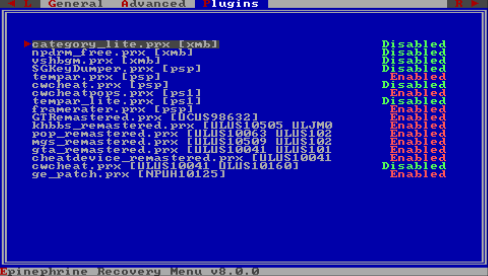 | Hold L | Plugins disabled | On PSP/PS1 title Reset/Power-on/launch |