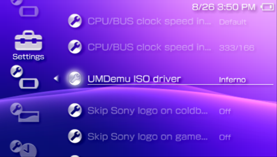 - Support executing PSP unsigned code execution (homebrew software, PSP/PS1 backups)